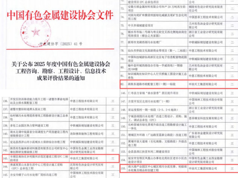 近日,中國有色金屬建設協(xié)會正式揭曉2025年度中國有色金屬建設行業(yè)優(yōu)秀工程咨詢、勘察、設計成果獎評選結果。中冶天工憑借卓越的創(chuàng)新設計能力,取得一項二等獎和兩項三等獎的優(yōu)異成績。本次獲獎充分展現(xiàn)了中冶天工在規(guī)劃設計領域的技術實力和綜合能力,通過精品工程的示范效應,為企業(yè)實現(xiàn)高質量發(fā)展奠定了堅實的業(yè)績基礎、打造了品牌優(yōu)勢。