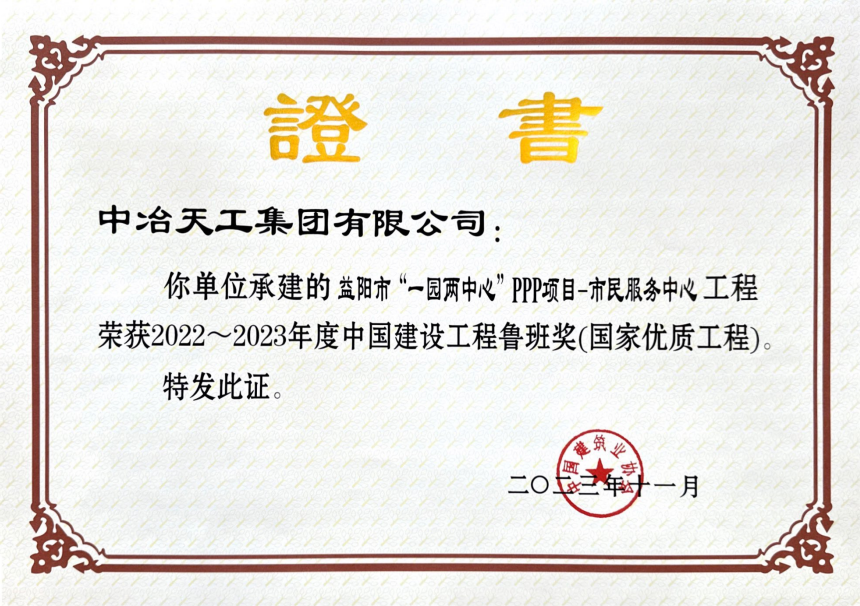 2022-2023年度中国建设工程鲁班奖(国家优质工程)益阳市“一园两中心”PPP项目-市民服务中心