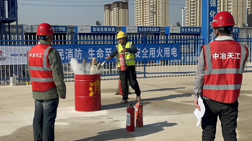演練活動圍繞項目實際設計,采用理論教學與實際操作結合的方式。演練內容從三個維度展開,即干粉滅火器使用方法、消防水帶運用技巧和火災逃生方法。講解時,技術人員結合現場實際,從通用消防知識深入到施工特定消防知識和技能。此外,組織全體親身體驗和操作練習,通過互動學習強化現場人員消防知識記憶理解,提升應對火災能力。