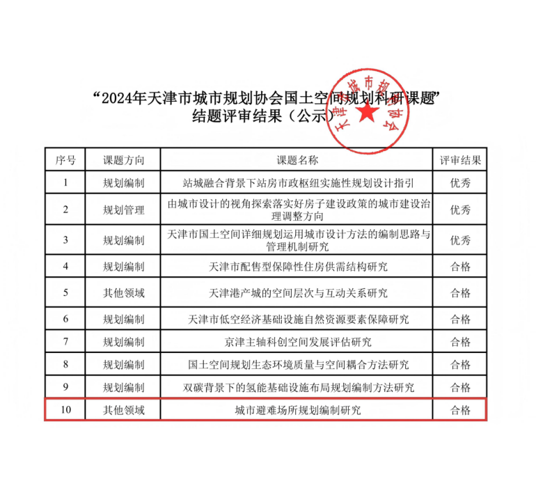 近日,由工程技術總院牽頭研究的“城市避難場所規劃編制研究”課題,憑借扎實的研究基礎、創新的成果體系及突出的實踐價值,在天津市城市規劃協會組織的專家評審會議上獲得一致認可,成功通過結題評審。