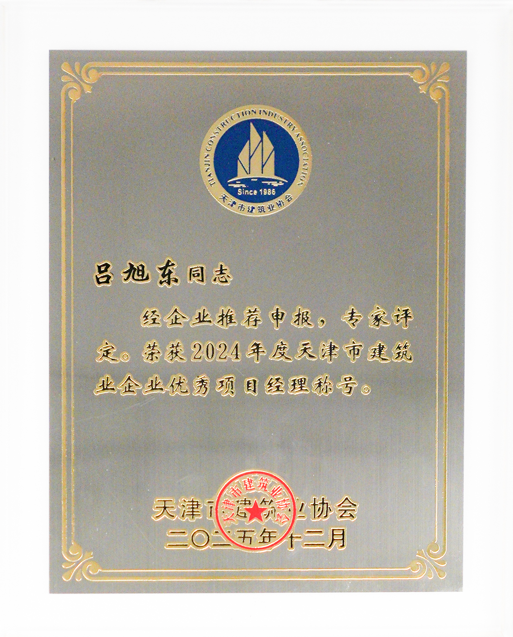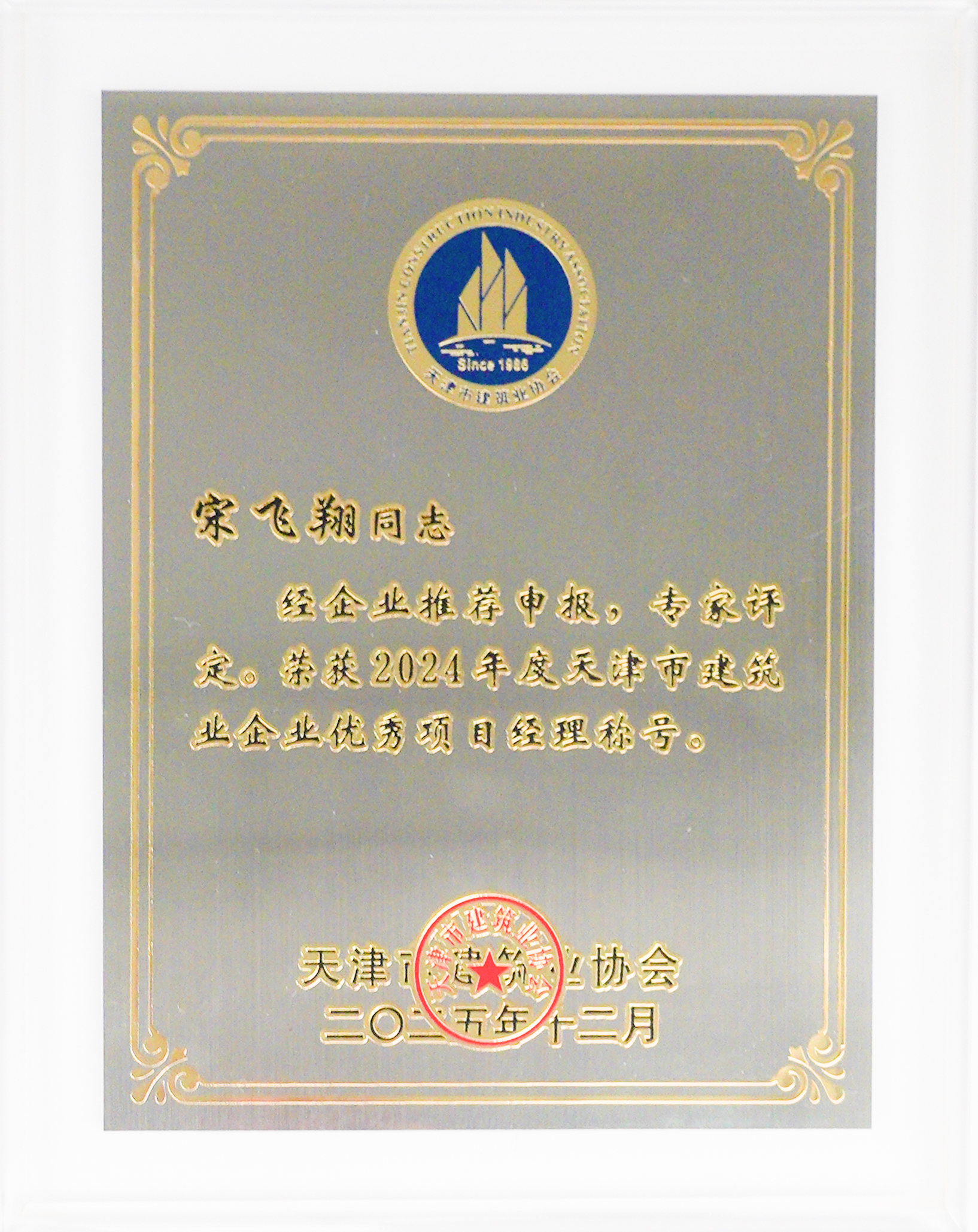 近日,天津市建筑業協會頒發了“2024年度天津市建設工程誠信項目經理”獎牌,公司呂旭東、谷明亮、宋飛翔3名項目經理憑借扎實的項目管理能力、嚴格的履約誠信表現與突出的工程實績,成功獲評“2024年度天津市建設工程誠信項目經理”。