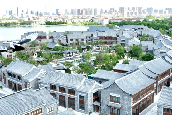 45個涵蓋明清合院風格、民居簡約風格和現代風格的建筑組合而成的5個街區,是建設者們獨具匠心打造的休閑娛樂圣地,無論是具有鮮明明清古建特色的南川老街,還是包含民居風格的滄州食坊街、特色小吃街,亦或是古今交融的濱河雅趣休閑街、濱湖時尚酒吧街,都將運河沿岸的商貿繁華、生生不息展露無遺。各個組團院落通過采用現代工藝仿古建筑手段,高度還原冀中古建風貌。在項目建設過程中,項目建設者們充分考量木質結構難以達到現行結構安全和消防規范各項要求的現實情況,對各組團結構主體采用框架結構進行建設,使用混凝土將主體框架與檁墊枋澆筑為一體,同時充分把控建筑風格的細節之處,將木質結構的飛椽、檐椽、抱頭梁等小裝飾構件定于混凝土上。會同設計方先后研發了《一種混凝土框架結構的仿古建筑檐口》《一種基于傳統建筑檐口部位木椽子的固定方法》等發明專利解決檐口木質結構安裝問題,最大程度還原古建特色。